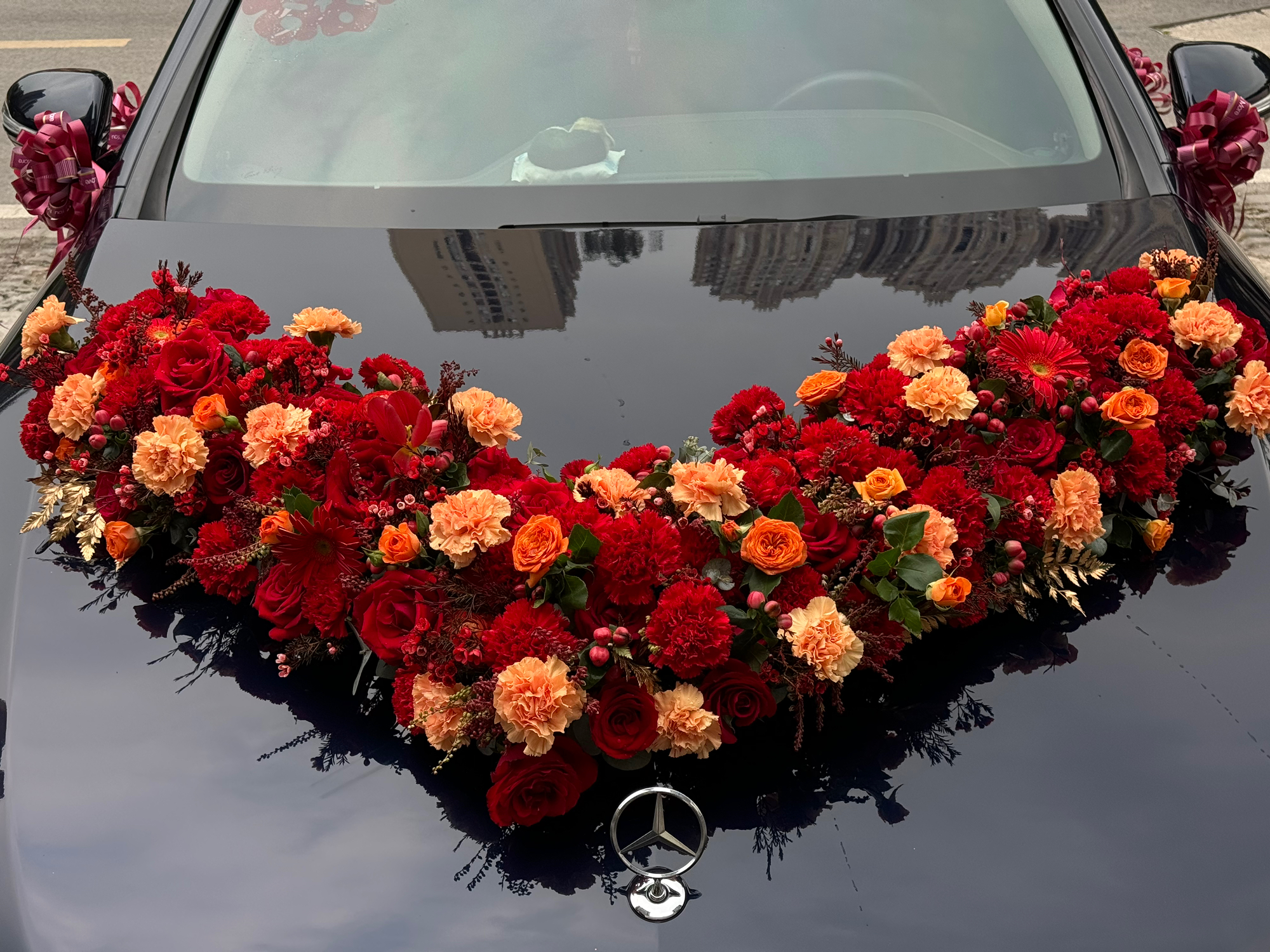 红色系婚车花