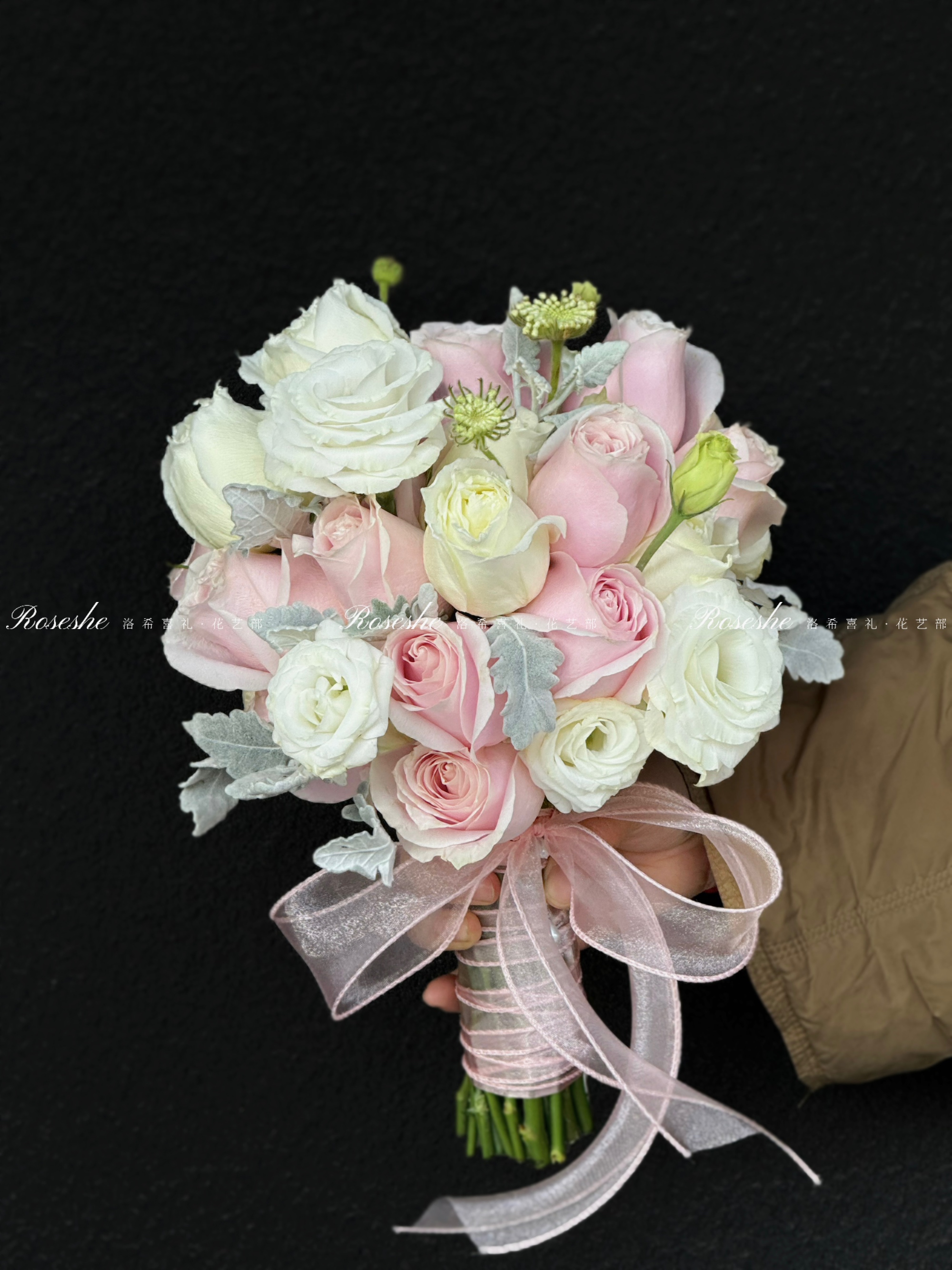 ROSESHE•洛希喜礼I手捧花•实拍图 - 因为季节不同,不能保证花材这个季节就有 不会做出100%的还原度 但是颜色和花材可参考 - 具体问题可咨询客服(PS:冬天的粉雪山颜色较浅)
